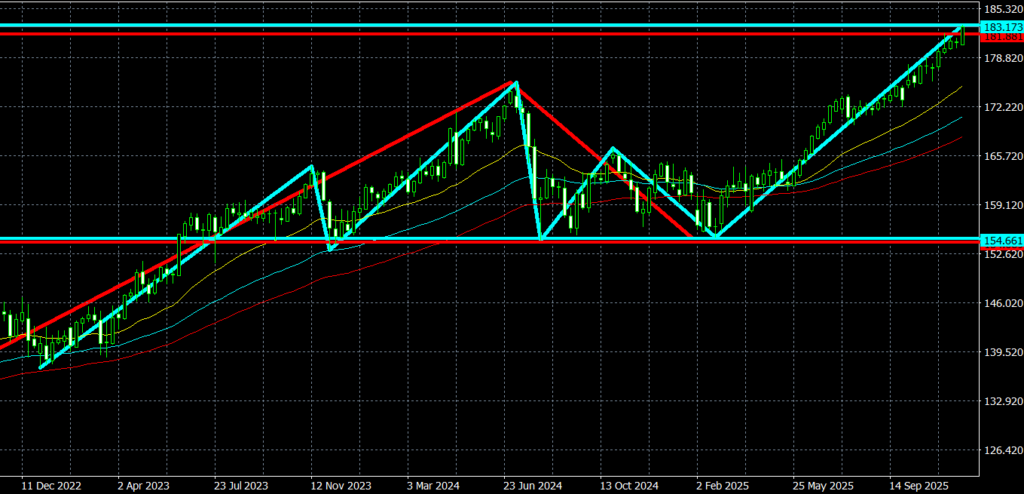 - 10月のローソク足は、前の月の高値をしっかりと更新し、陽線で確定。