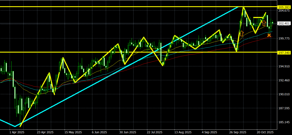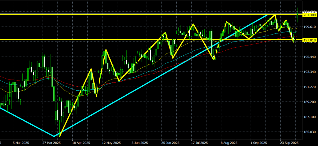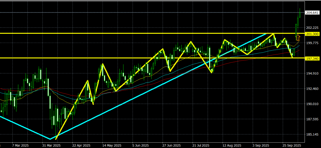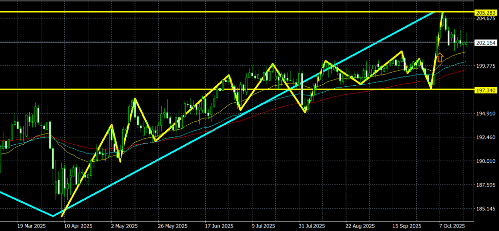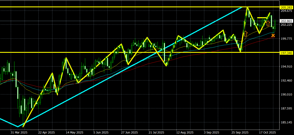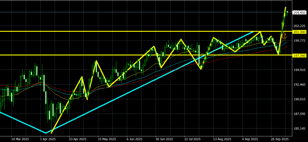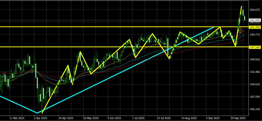 直近ローソク足は、押し目下落からの上昇トレンドを形成。