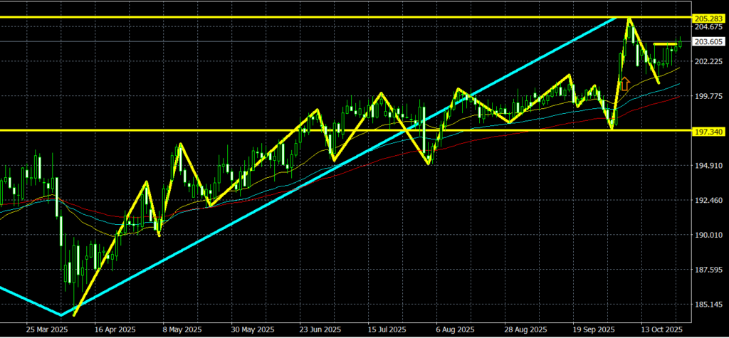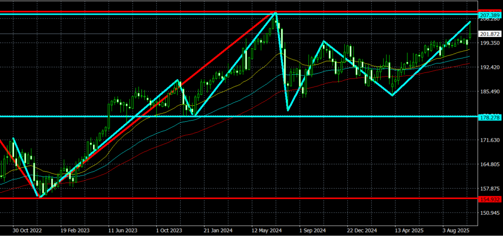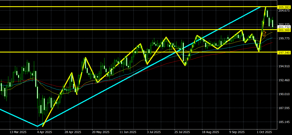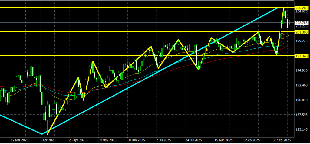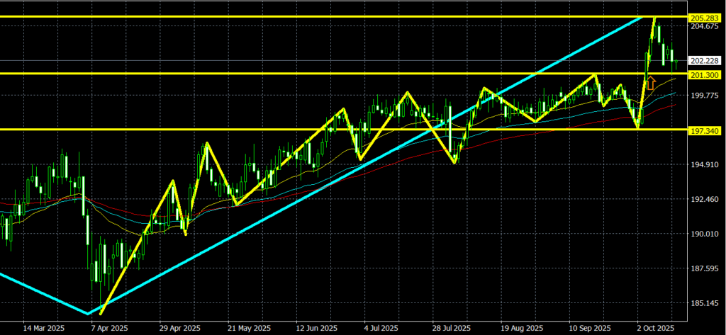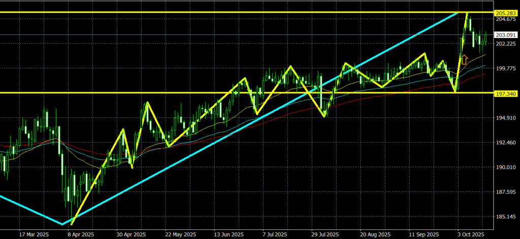 直近ローソク足は、押し目下落からの上昇トレンドを形成。