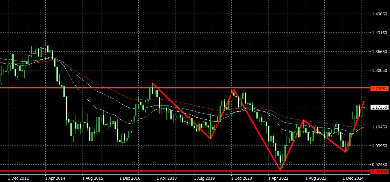 直近ローソク足は、上昇トレンドを形成しており、レンジ内下落トレンドの前回高値を上抜け確定。