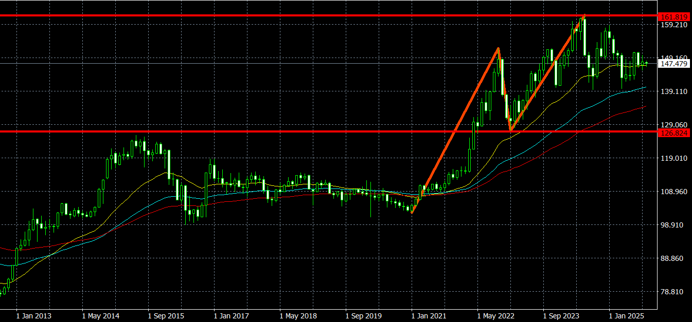 - ここ3週間は高値も安値も更新できておらず、先週も前の週の高値と安値の両方を更新しており、方向感が無い状況。