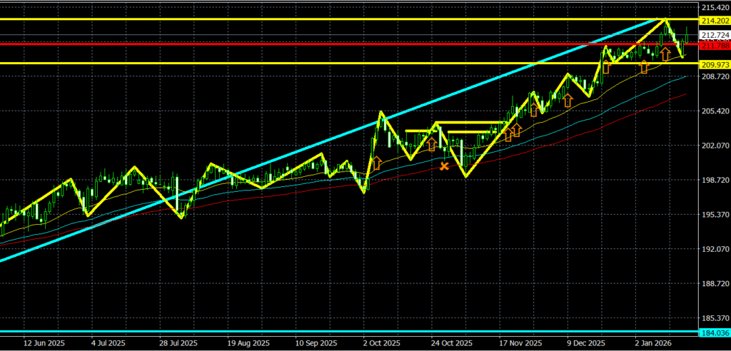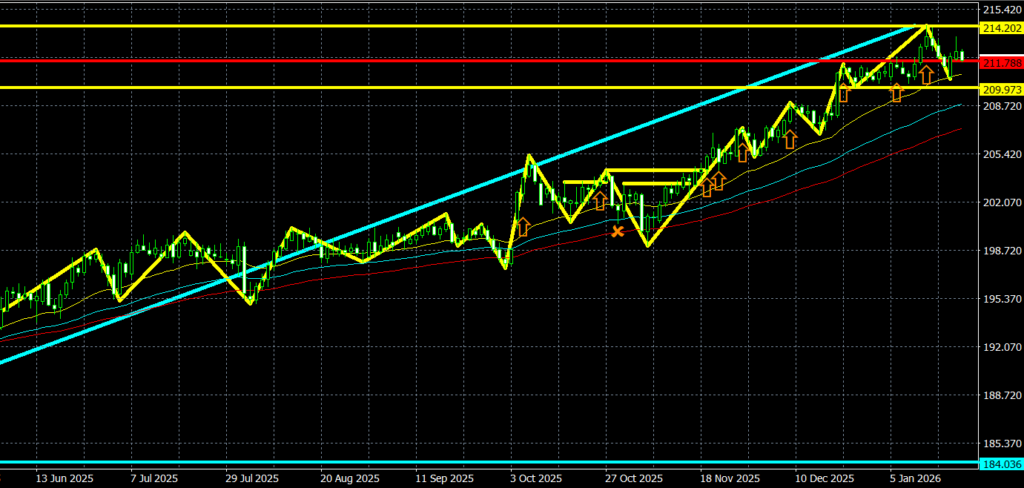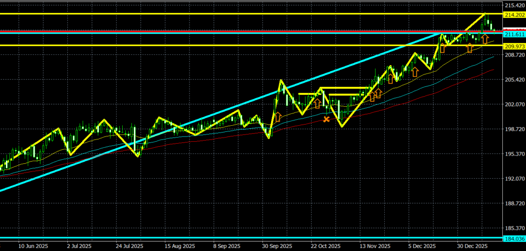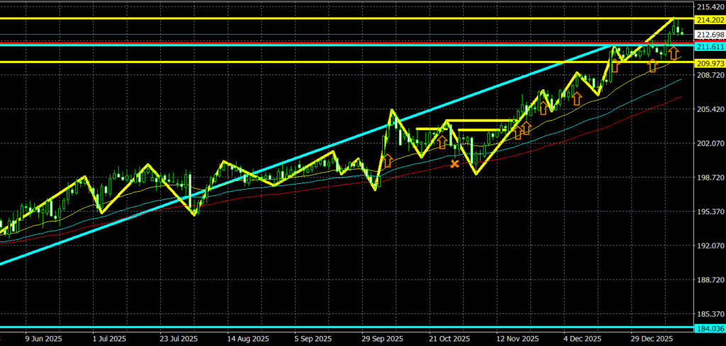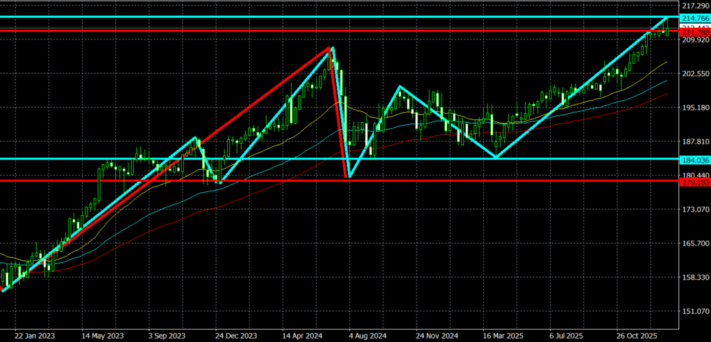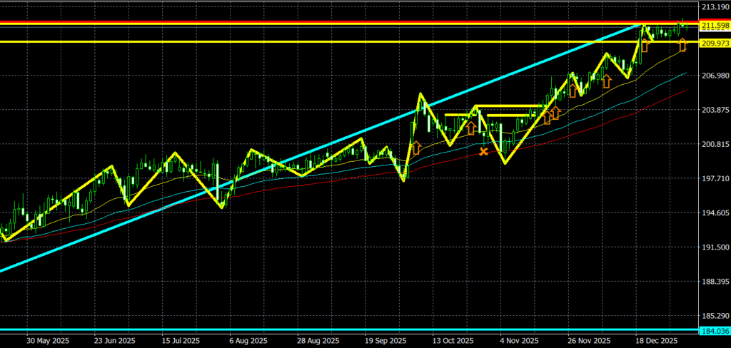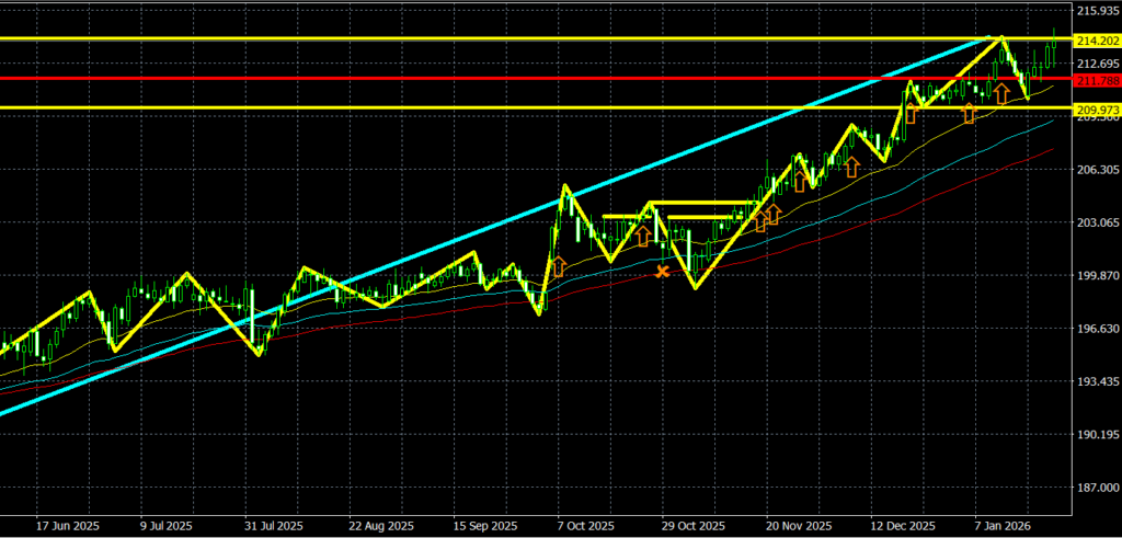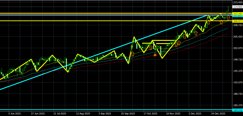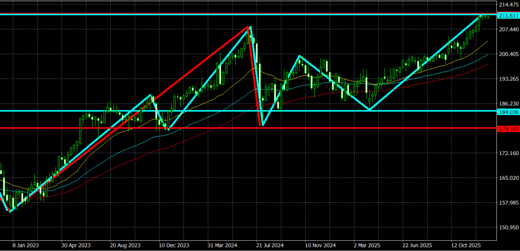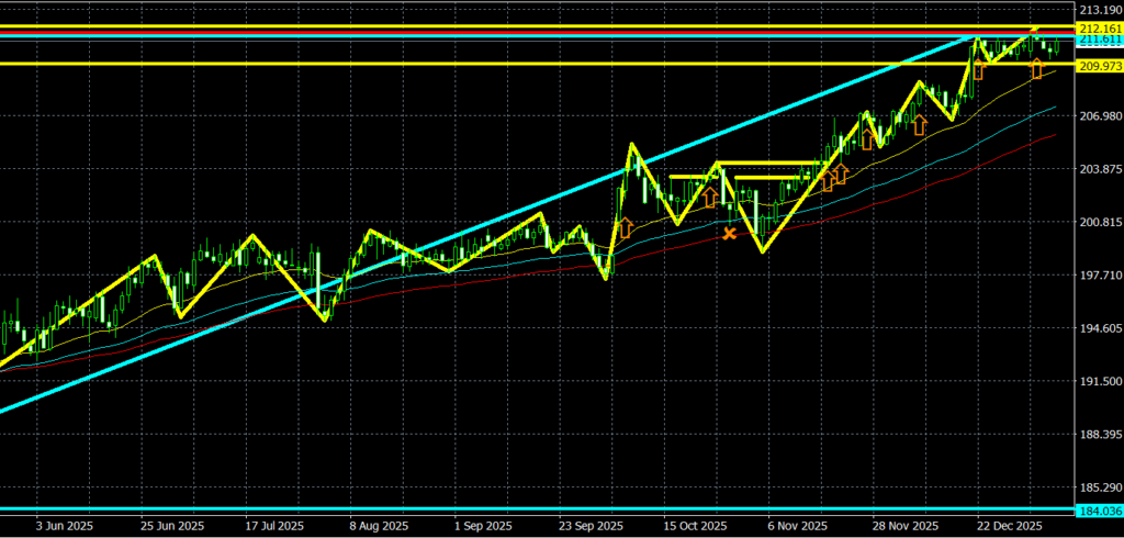 - 直近ローソク足の動きは、高値を更新する上昇の流れが継続中。