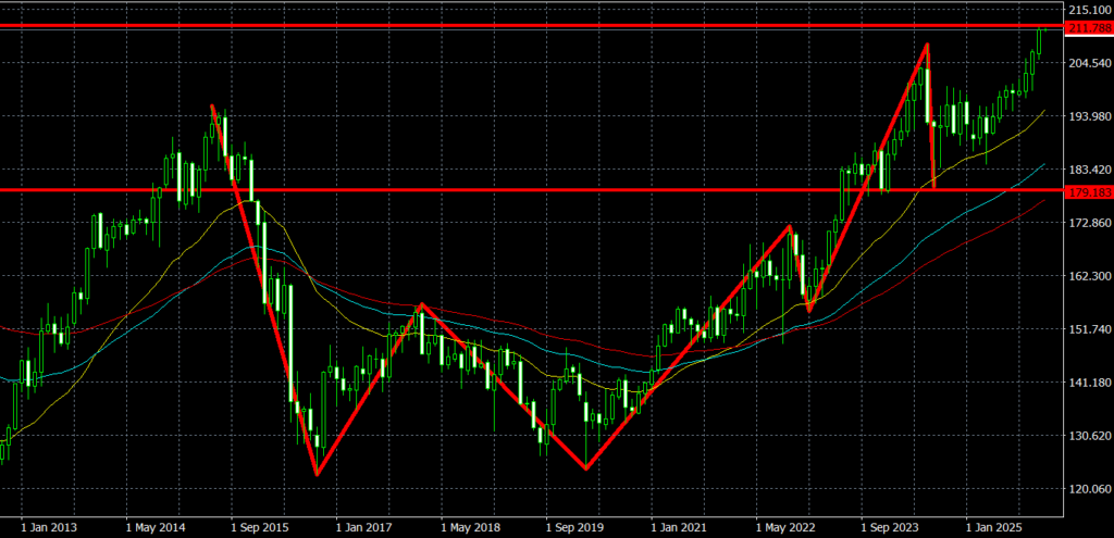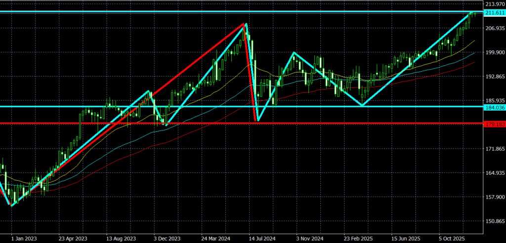 - 12月のローソク足は、11月から高値安値も切り上げており、大きな陽線が確定。