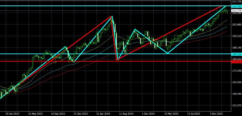 - 上昇トレンド中の高値更新中。