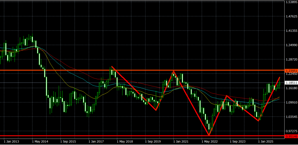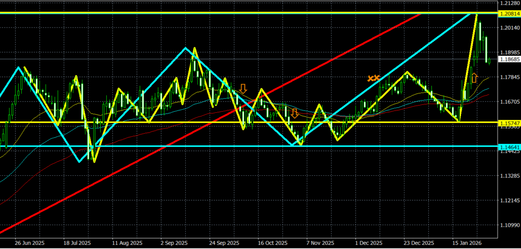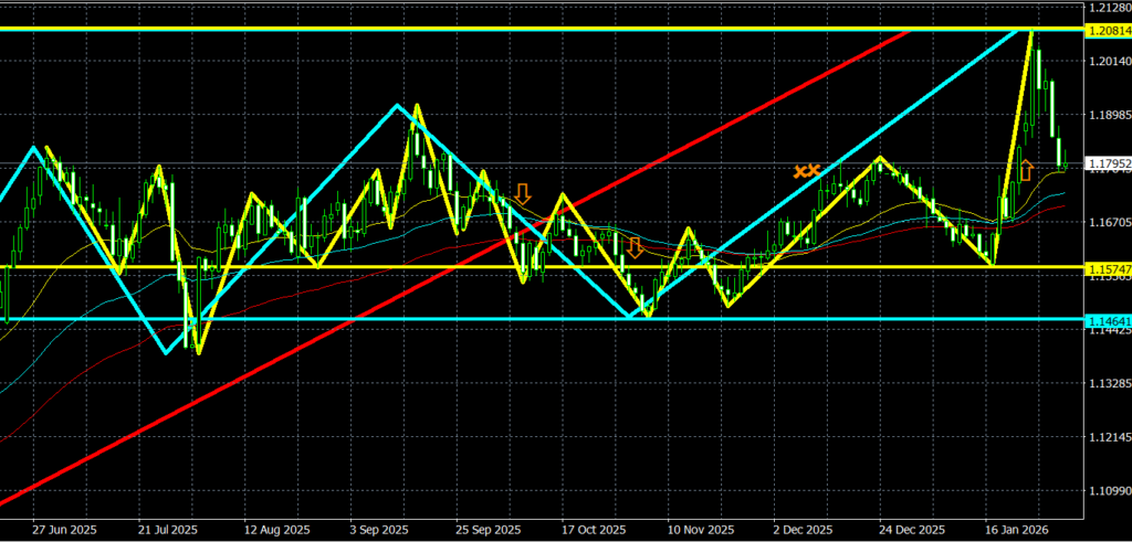 - 1月のローソク足は、11月、12月のローソク足に続いて高値安値を切り上げる陽線が確定しており、直近の高値を上抜けて高値を更新。実態では直近の高値は上抜けできず。