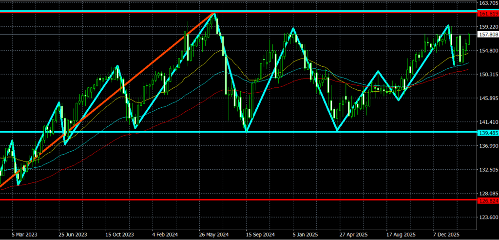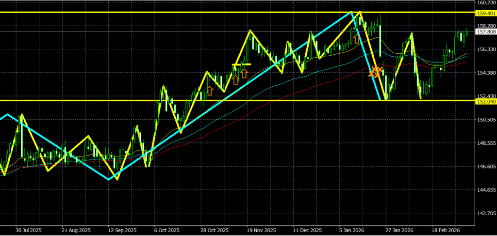 - 2月の月足は、1月の月足の高値安値を更新しない陽線が確定しており、方向感が無い状況。