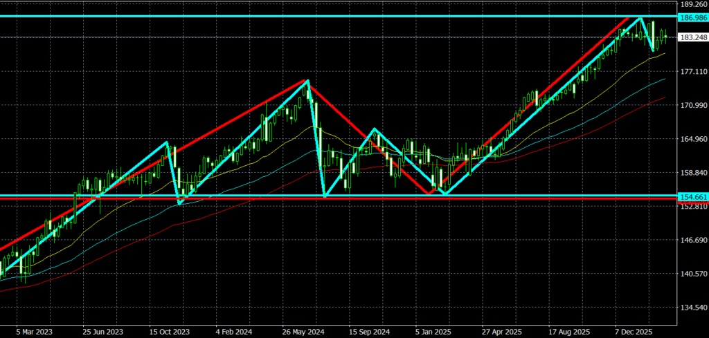 • 上昇トレンドの高値更新中。