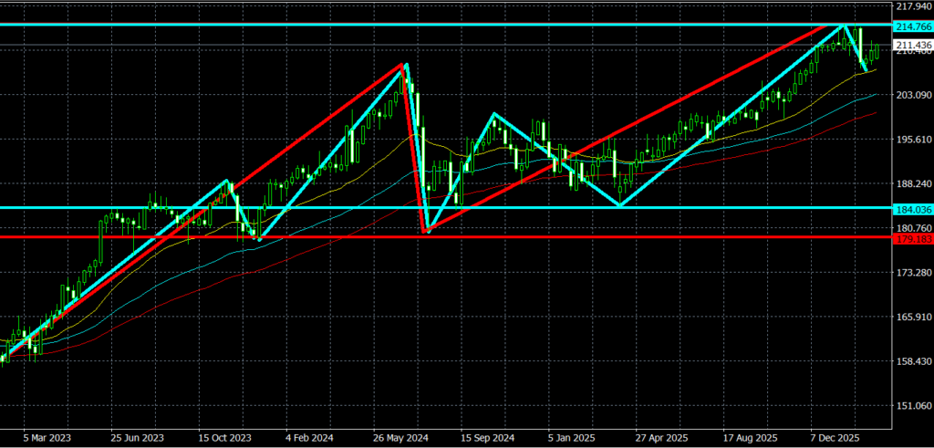 - 上昇トレンドの高値更新中。