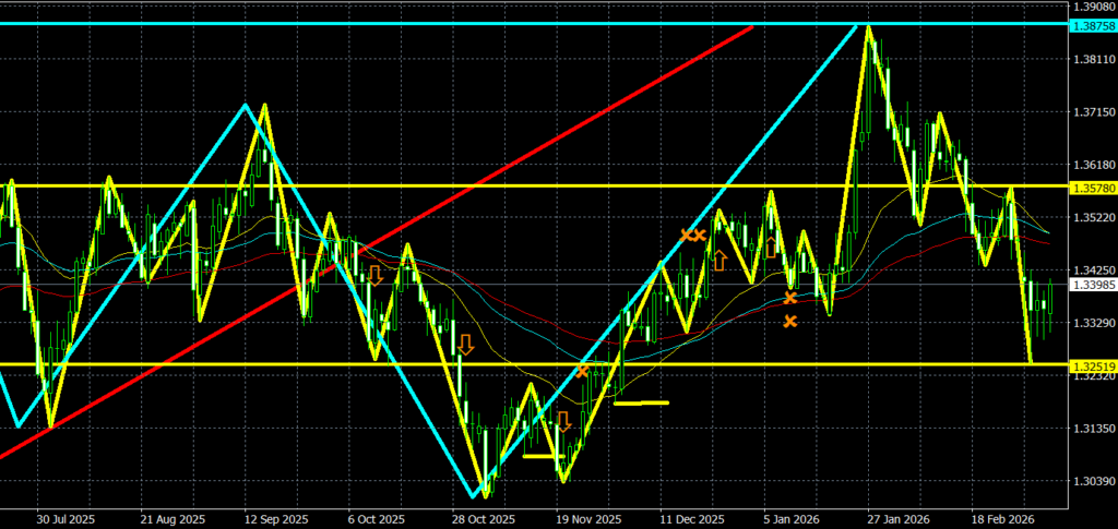 • 下落トレンド中のレンジで、レンジ内上昇トレンドが発生中。