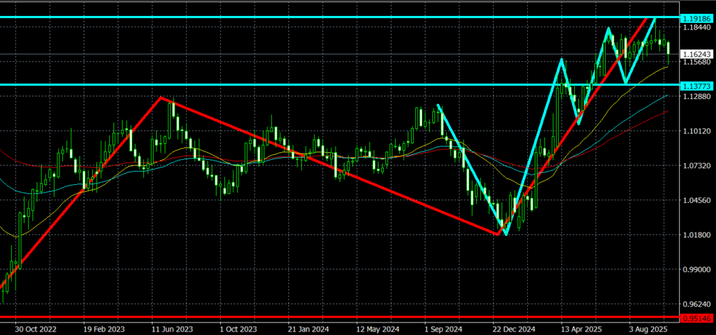 大きな流れは上昇、日足レベルは下落で、直近は方向感無くなっている状況。